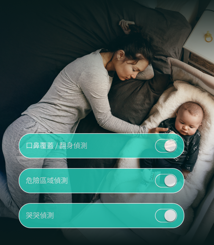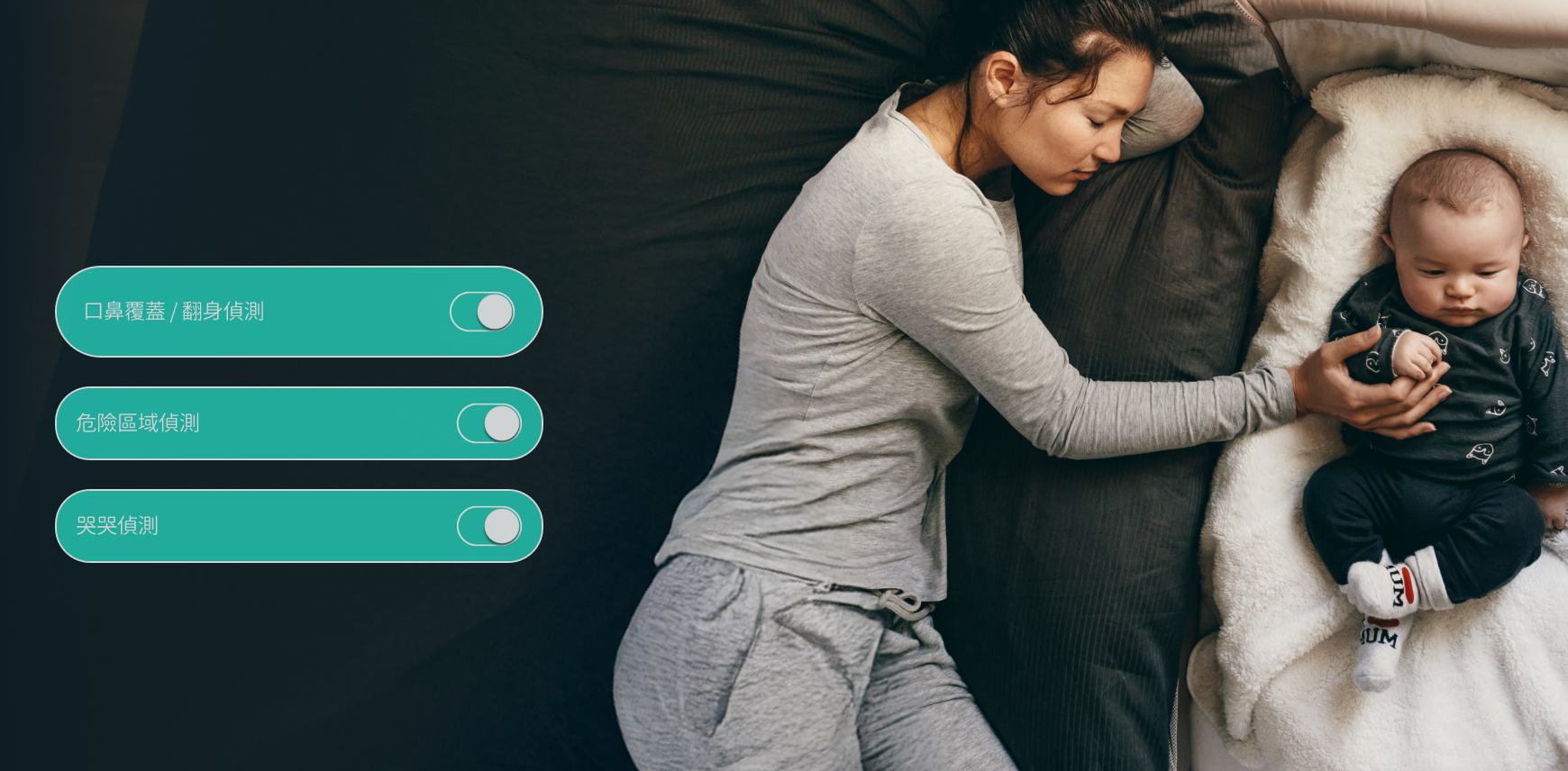 搭載 2.5K QHD 超高解析度鏡頭,發送即時的口鼻覆蓋與翻身通知 |