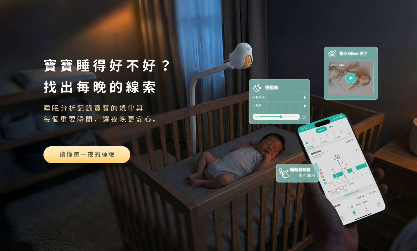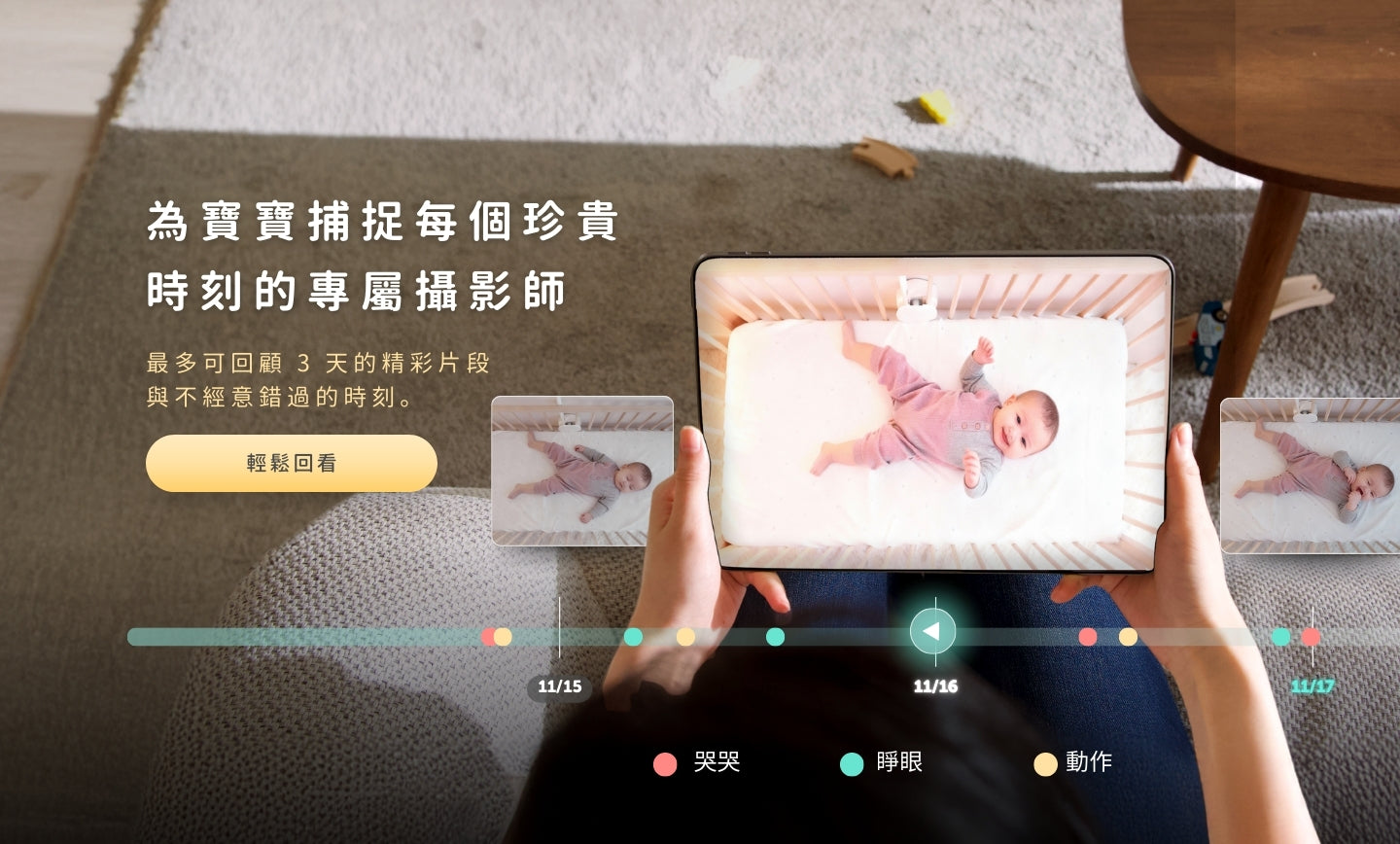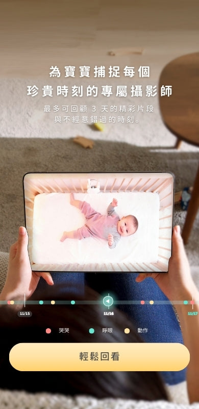 連續三日的回放搭配詳細的睡眠分析,方便追蹤寶寶睡眠規律 |