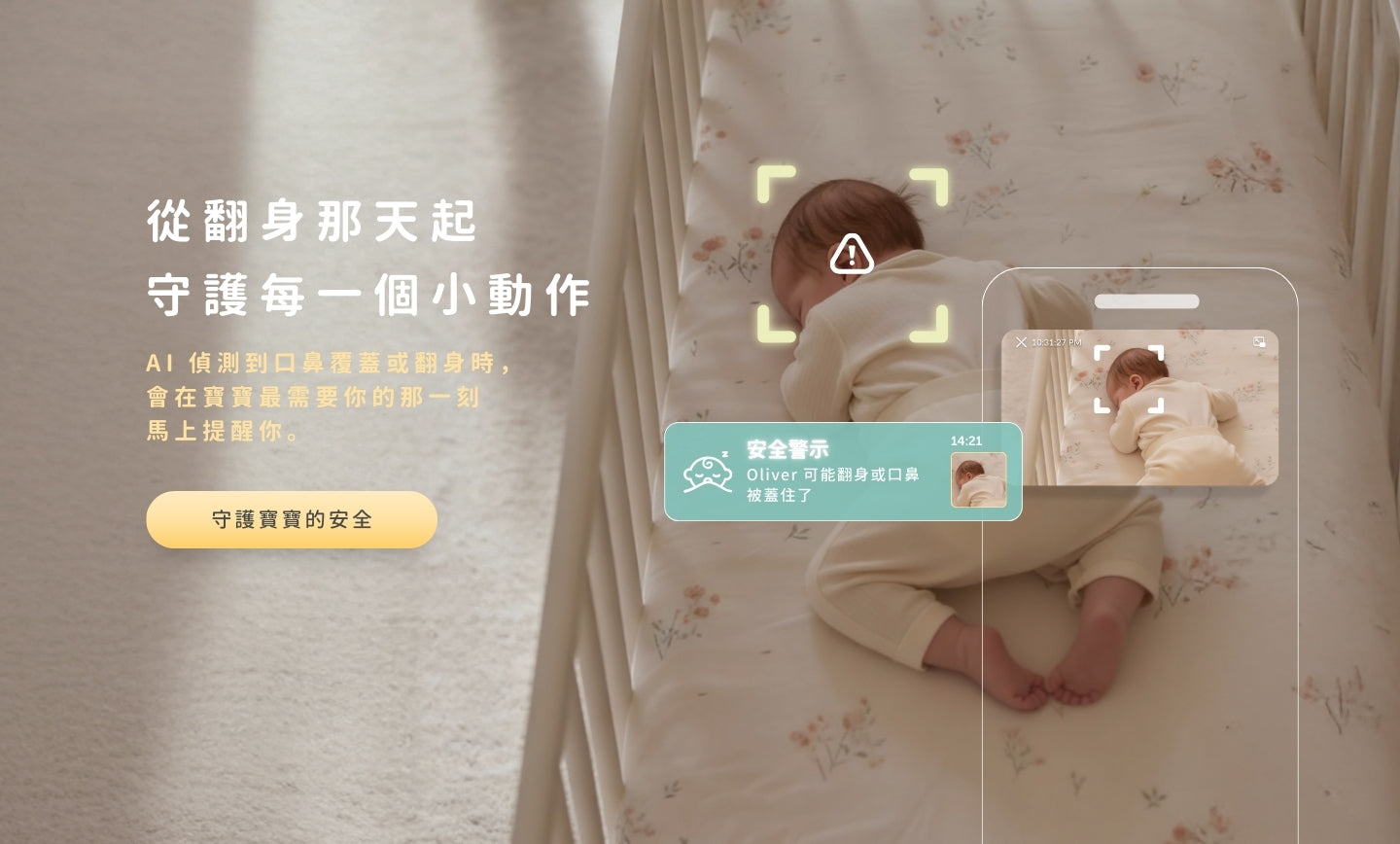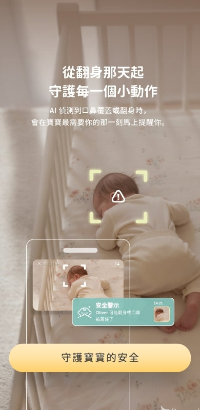 搭載 2.5K QHD 超高解析度鏡頭,發送即時的口鼻覆蓋與翻身通知 |