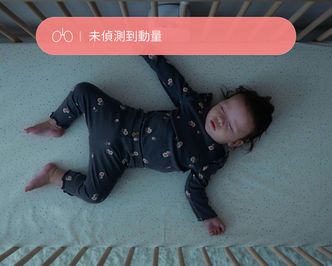 當好眠板偵測不到寶寶的動量時,攝影機的 AI 智慧偵測會即時判斷寶寶狀況,並發送通知